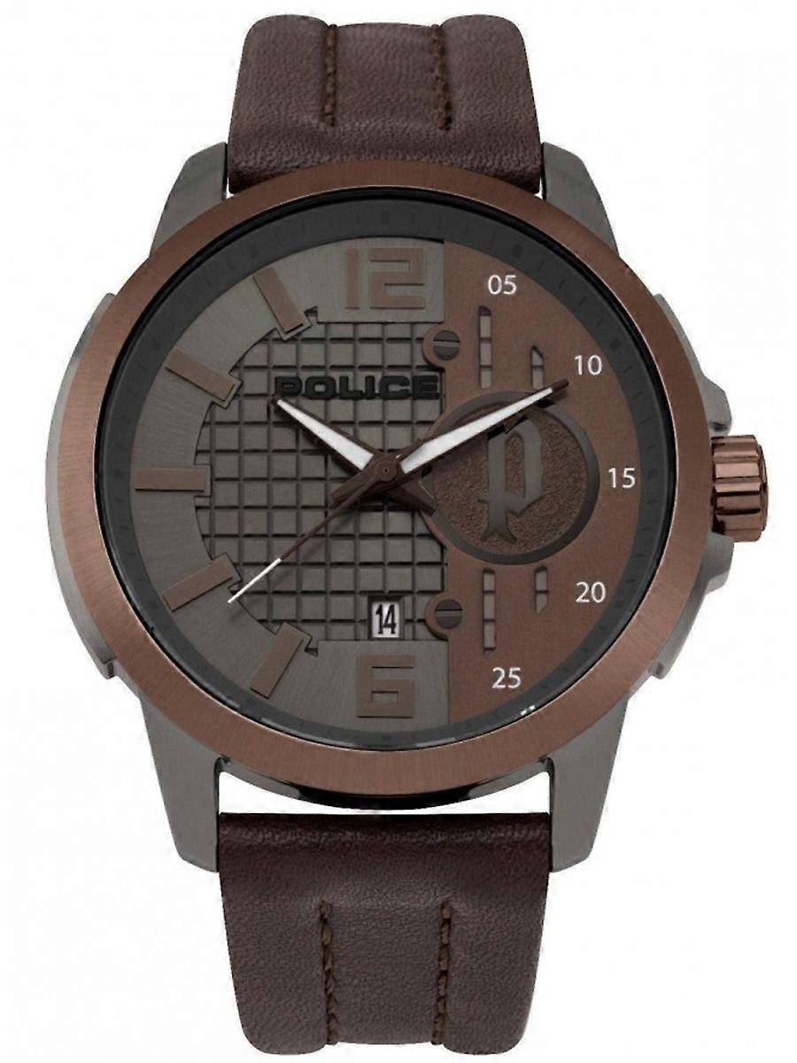 Police Brun Äkta Läder Eller Läderimitation PL.15238JSUBN/13 Herrklocka