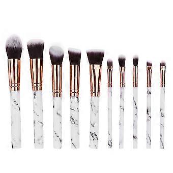 10pcs Makeup Brush Set Marbling Handle Foundation Eyeshadow Powder Brush White