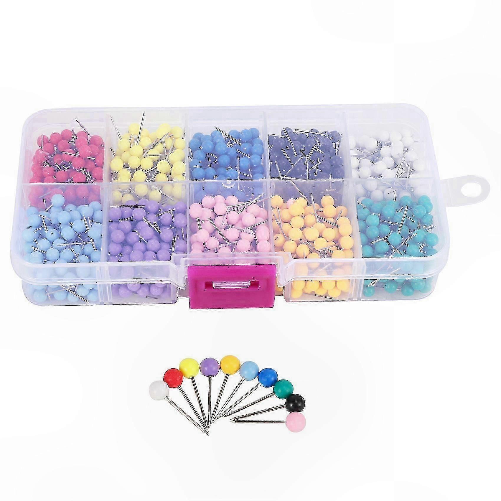 1000 Count Plastic Head Map Tacks with Steel Points for Office and School Use