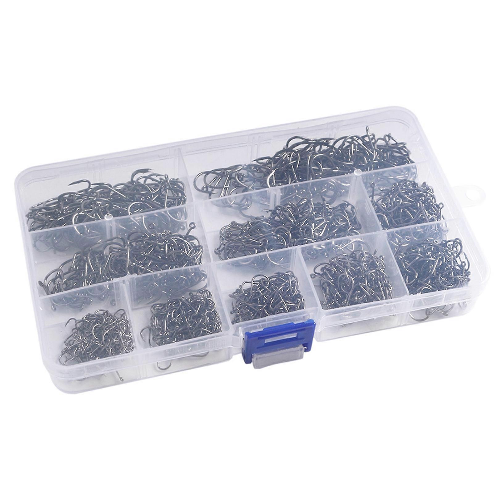 1000PCS Fishhooks Fish Hooks with Barbs 10 Sizes Carbon Steel Fishing Hooks with Portable Storage Box