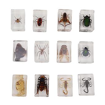12 Pcs Real Bug Specimens in Transparent Resin for Science Education Classroom Use, Tabletop Insect Sample Display and Study Kit