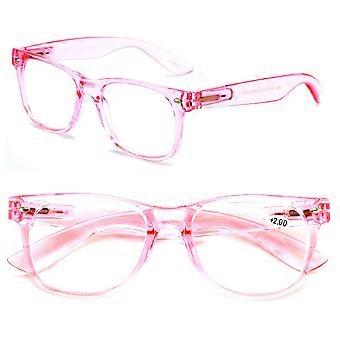 2 Pairs Transparent Neon Color Deluxe Reading Glasses - Comfortable Stylish Simple Readers Rx Magnification +3.50