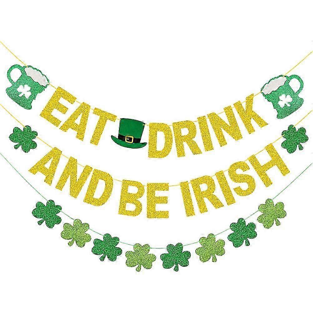 "2 Sets Party Paper Pendant St. Patrick's Day Themed Bunting Pendant String Flag"