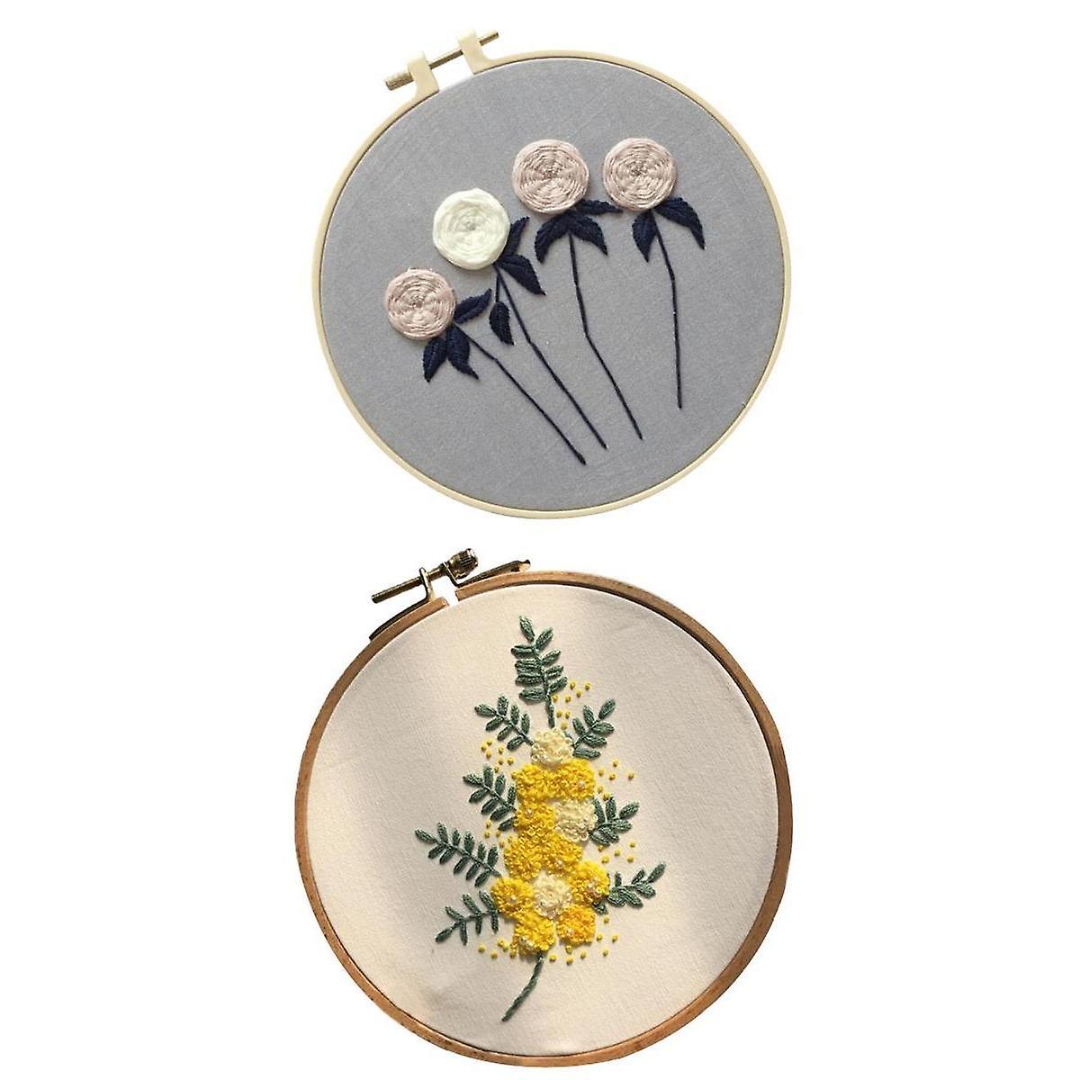 2pcs Cross Stitch Stamped Embroidery Kit with Embroidery Hoop