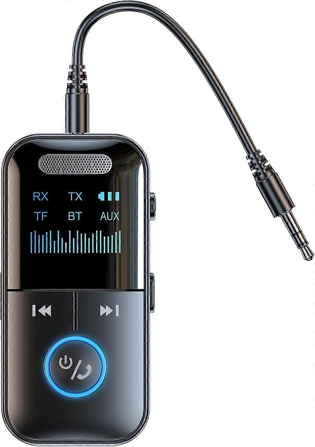 luetooth 5.4 & Lower Latency: The Bluetooth transmitter receiver is equipped with the most advanced Bluetooth 5.4 smart chip, providing excellent audio decoding technology, guaranteeing up to 99% low latency, maximum restoration of the original sound.AptX Low Latency - Equipped with Enhanced microphones and upgraded CVC8.0 technology, the car bluetooth receiver aux effectively filters out road noise, resulting in clearer hands-free calls on both ends of the line.Compact Design for Easy Portability - The Bluetooth Car adapter takes up little space, so you can take it anywhere. Connect it to your vehicle, speakers, or any headphone jack, and the 3.5mm jack design gives you no tangled cords to untangle.Note:Before using the product,it must be fully charged.You can take this Bluetooth audio receiver whenever you go,Very good companion for drivers.If you encounter any problems during use, please feel free to let us know and we will help you at any time.Up to 10 Hours of Battery Life - The working time of this aux Bluetooth adapter is up to 10 hours when making calls or playing music. Use Type-C fast charging cable (included in the package) to fully charge in 2 hours.