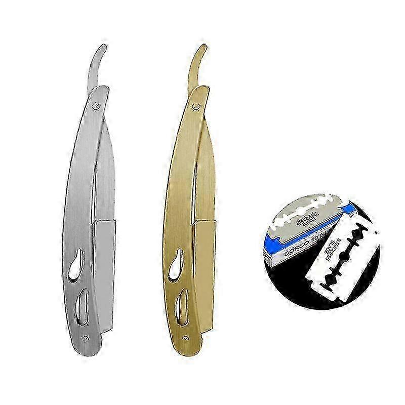 2set Men Straight Barber Edge Steel Razors Folding Shaving Knife Hair Removal Tools With 20pcs Blades gold and silver 2025