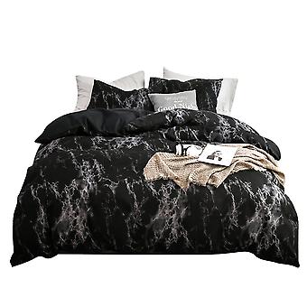 3Pcs Set Polyester Marbled Quilt Cover Pillowcase Bedding Set EU AU King Size (Black)