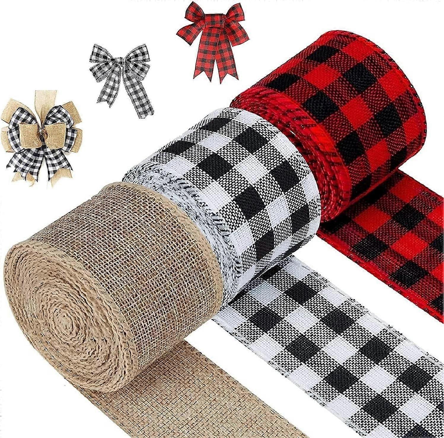 3 Rolls 2Inch Plaid Ribbon Buffalo Plaid Christmas Tree Ribbon Plaid Burlap Ribbon Buffalo Plaid Ribbon