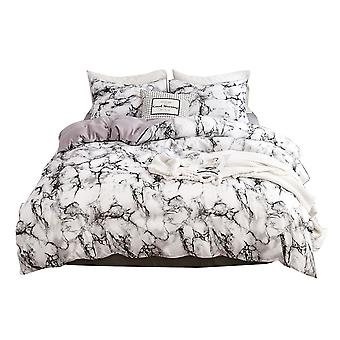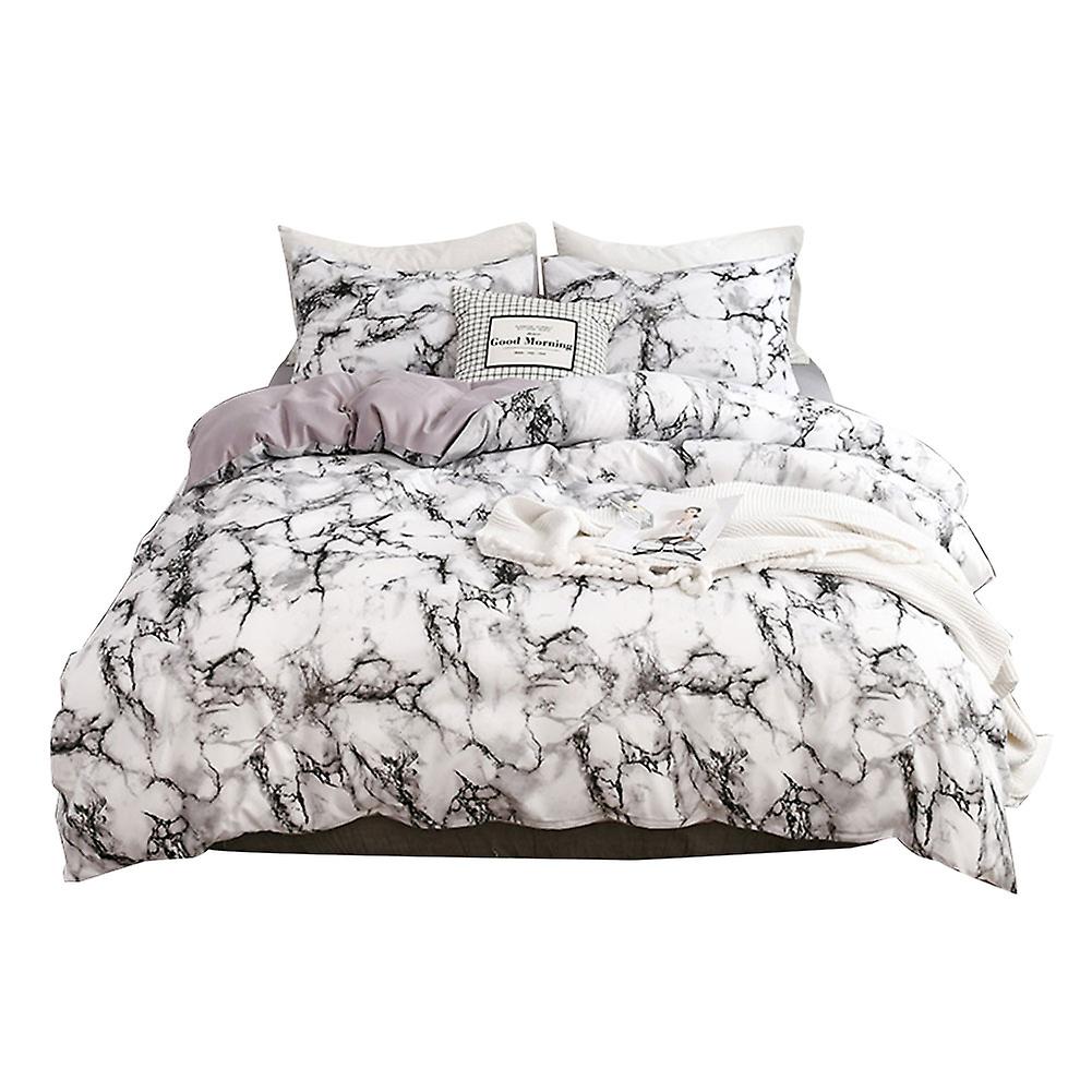 3Pcs/Set Marbled Pattern Polyester Bedding Set Quilt Cover and Pillowcase US-Full Size (White)