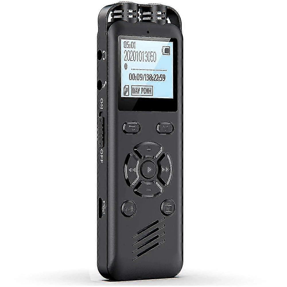 The recorder has a -in 32GB internal memory can store 48 hours (WAV 1536 kbps) to 2320 hours (MP3 32 kbps) or 4000 songs (music mode) recordings (voice mode). -in 400mAh rechargeable lithium battery, supports up to 30 hours of continuous recording after a single full charge. Charge or transfer files via the included -USB cable. The perfect recording device for speeches, meetings, interviews, classes, journalists and more.Portable audio recorder, equipped with professional recording chip, -in dual dynamic noise reduction microphones, effectively reducing background noise, supports stereo recording up to 1536kbps. External microphones are supported. External speakers can directly play recordings and music. Files are saved in MP3/WAV . The recorder can also be used as a Windows- and - MP3 player or flash drive.Voice activated voice recorder, when the "VOR" function is activated, the sound is automatically detected during the recording process. When the sound falls below a certain level, the recording will pause after about 2 seconds. When the sound reaches the level, the recorder will recording again. It can avoid invalid recording and save recording time and capacity. Note: The "VOR" voice control function must be turned on in the "Setup Mode" to achieve this function.Simple operation, easy to , one-key recording or saving, easy to operate. Turn on the recorder and the "REC" button up to recording. When the recording is finished, swipe the "Save" button and the recording will be saved.Colour:blackMaterial:Metal + PlasticPackage Contents:1 * Voice recorder1 * Charging cableNotice:1. Do not disassemble the recorder.2. Please do not put this recorder in water or any other liquid.3. Please do not this recorder in a hot, humid or dusty environment.4. Please charge the recorder before . If the device shows the battery is low, please charge it in time. It is to charge the device at least once two months, so as not to damage the battery if you do not operate the device for a long time (the device will stop working)Only the above package content, other products are not included.Note: Light and different displays may the color of the item in the a little different from the real thing. The measurement allowed error is +/- 1-3cm.