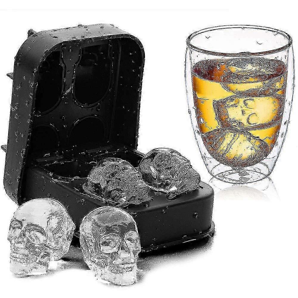 3D Skull Ice Cube Mold,3D Skull Silicone Ice Cube Molds Ice Cube Tray with Lid for Whiskey Cocktail