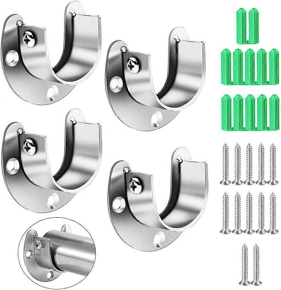 Sturdy Construction: Constructed Of High Quality, Thick And Rust-Resistant Stainless Steel, Each U-Shaped Bracket Has Good Load-Bearing Capacity. It Is Strong Enough To Hold Most Hanging Items In The Home. U-Shaped Design: Each Bracket Has 3 Fixed Holes, The Design And The Side That Touches The Wall Is Flat, Which Makes It More Stable And Solid; The "U" Shaped Brackets Have Additional Set Screw Holes To Prevent Them From Rotating During Use.Wide Range Of Applications: You Can Place Pipes Or Rods On The Bracket, Which Can Be Used In Cabinets, Bathrooms, Windows, Laundry Rooms And Other Additional Storage Bars, It Is Easy To Hang Towels, Clothes, Ties, Etc.Secure Fixing: The Sockets At Flange Are Carefully Designed To Provide The Ideal Amount Of Space To Smoothly Slide In A Downrod. Unique U-Shaped Open Lip End Caps With A Convenient Set Screw On The Side Allow For Easy Installation And Quick Rod Removal.You Will Get: 4 X 32Mm Stainless Steel Open End Plug Holders, 12 Mounting Screws, 12 Hollow Wall Anchors And 4 Adjustable Screws, So The Sockets Hold Firmly On The Wall Or Wood Surface.