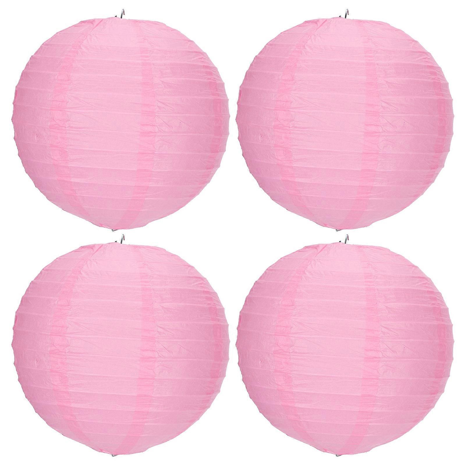 4 Sets Pink Round Paper Lanterns 7.5x8x8in with Metal Frame