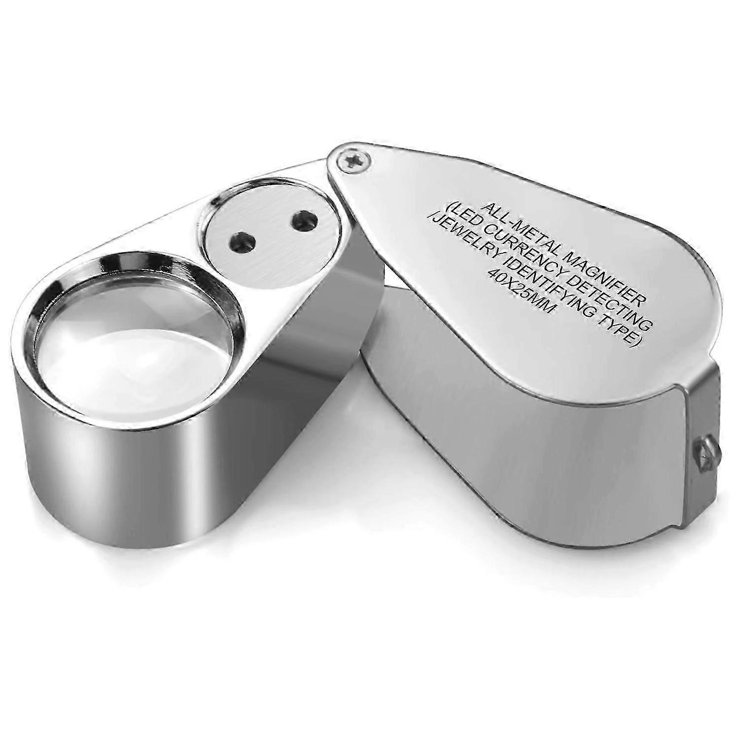 40X Loupe Magnifier LED/UV Illuminated Jewelry Loop Pocket Folding Magnifying Glass with Metal Construction