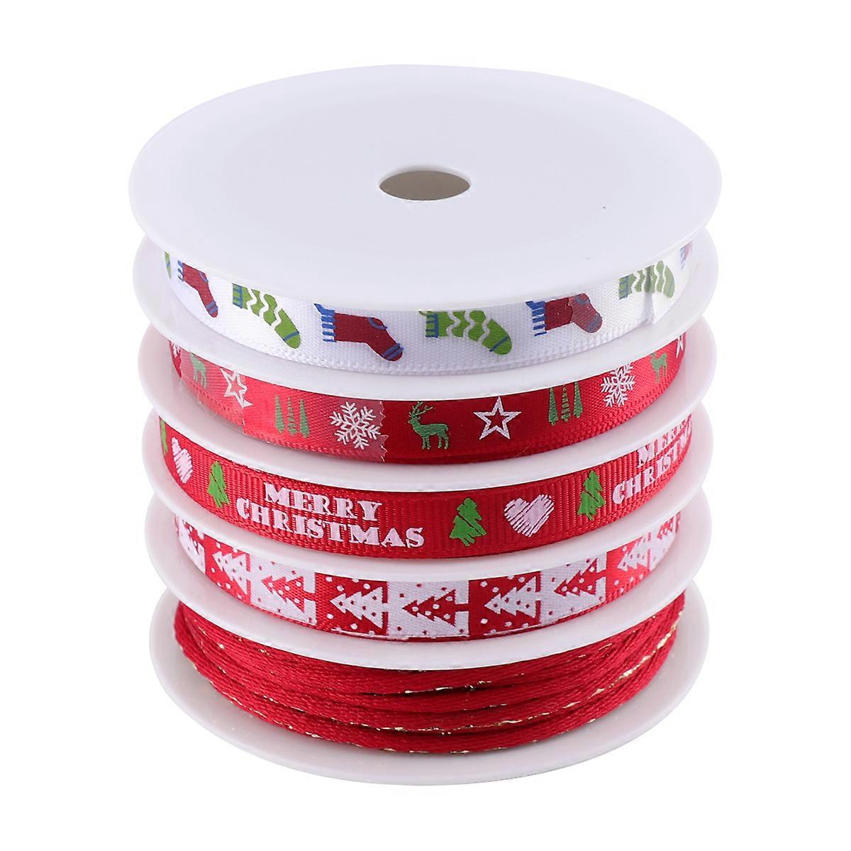 5 Rolls Gift Ribbon Bowknot Ribbon Handmade Ribbon Ribbon Crafts Christmas Printed Ribbon Set Diy Ribbon