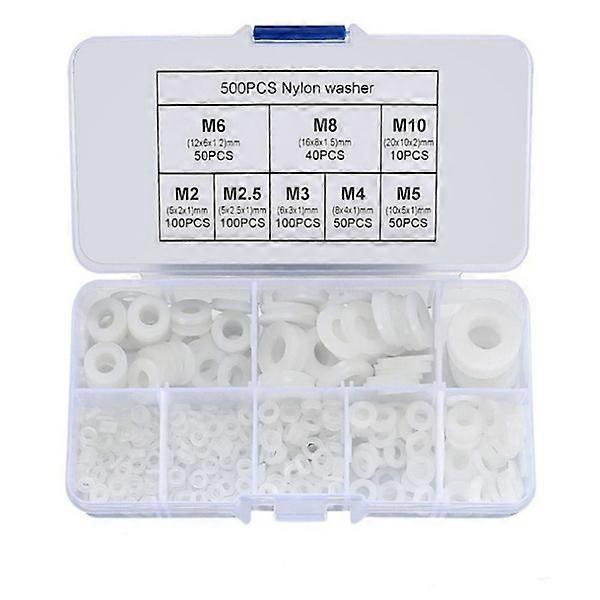 500pcs Nylon Plastic Washers Flat Washers Assortment Set