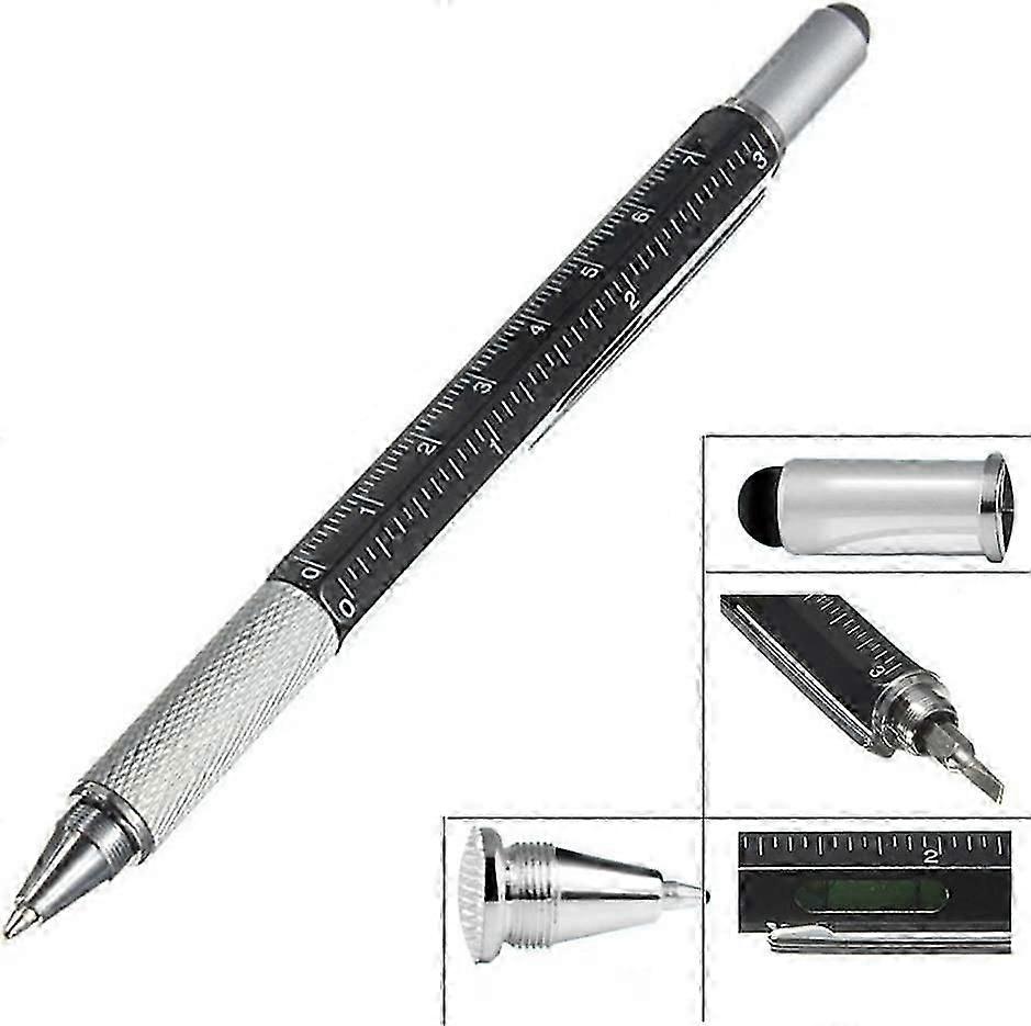 6 in 1 Tech-Tool Pen, Touch Screen Stylus/Flat-Head and Spirit Level Multifunction ToolBlack