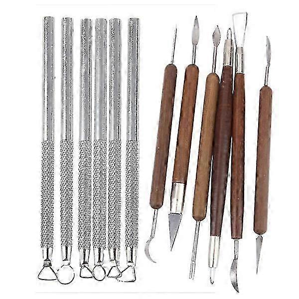 6 pcs Pottery Modeling Tools Wooden Handle & Set 6 pcs Aluminum Pottery Modeling