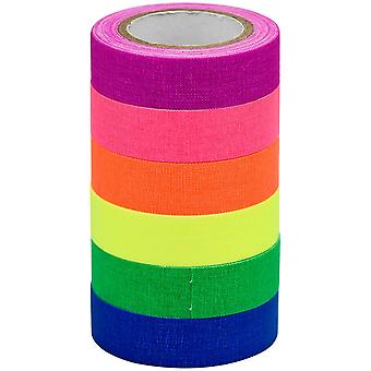 6 stuks fluorescerende doek tape 5m neon gaffer doek tape, uv blacklight reactieve glow in the dark tape voor glow party
