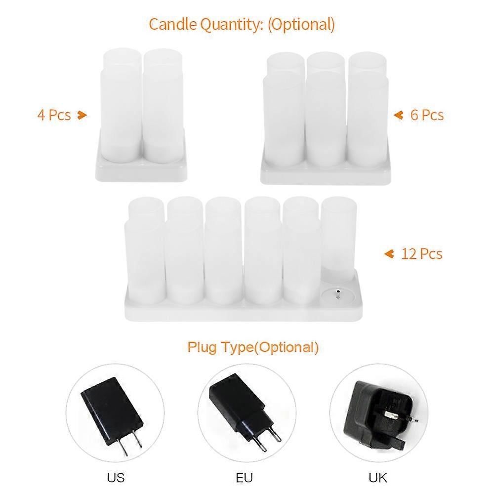 6pcs/set Rechargeable LED Flickering Flameless Candles Tealight Candles Lights with Frosted Cups Charging Base Yellow Light AC100-240V