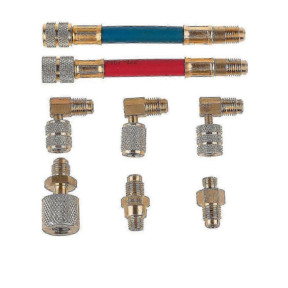 8pcs Car Air Conditioner Refrigeration R134a R12 Converting Adapter Hose Set Kits
