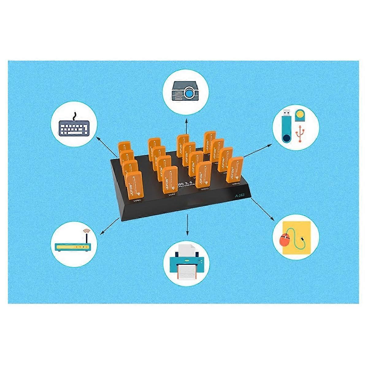A-163 25W Powered Super Data Speed 5Gbps 16 Ports USB3.0 Duplicator Hub USB Flash Driver Copier EU PLUG
