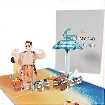 Keepsake Father Day Card, Exquisite Dad Birthday Pop Up Card, 3D Pop Up Father And Son In Beach Anniversary Card