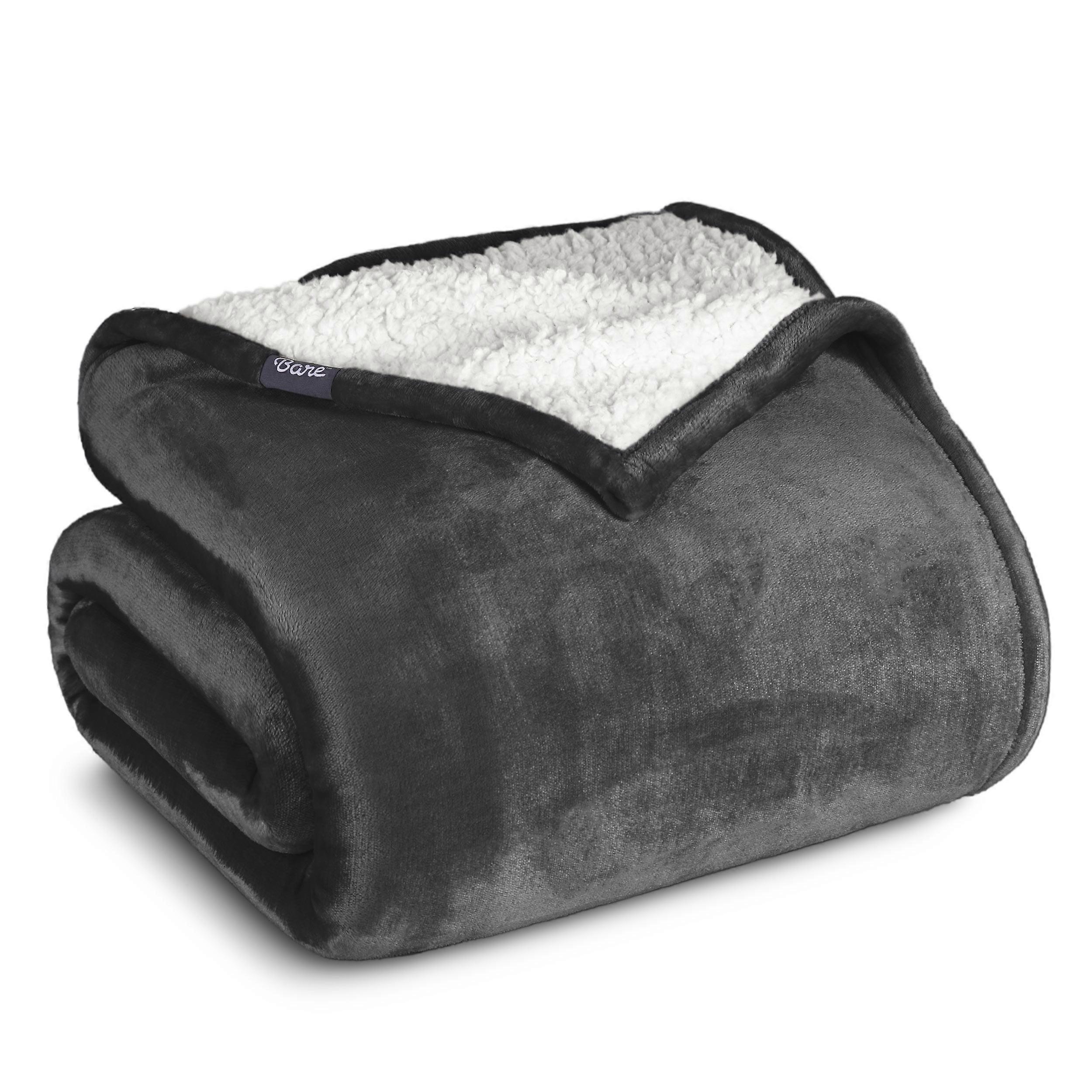 Bare Home Plush Sherpa Bed Blanket - Fluffy & Soft - Reversible - Lightweight - Twin/Twin XL, Forged Iron Gray