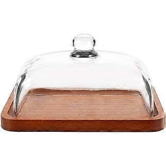Boterhouten schaal met glazen deksel Botervloot met glazen deksel Boterlade kaashouder