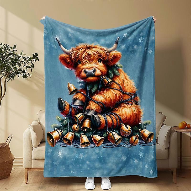 Cartoon Highland Cattle Pattern Blanket, 1 Count Soft Comfortable Throw Blanket, Warm Napping Blanket for Home Office Travel Camping