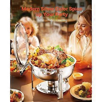 Chafing Dish Buffet-Set, 5 Qt 2er Pack, Edelstahl-Käfer mit 2 großen Pfannen mit Glasdeckel, Wasserpfanne Klappständer, Silber