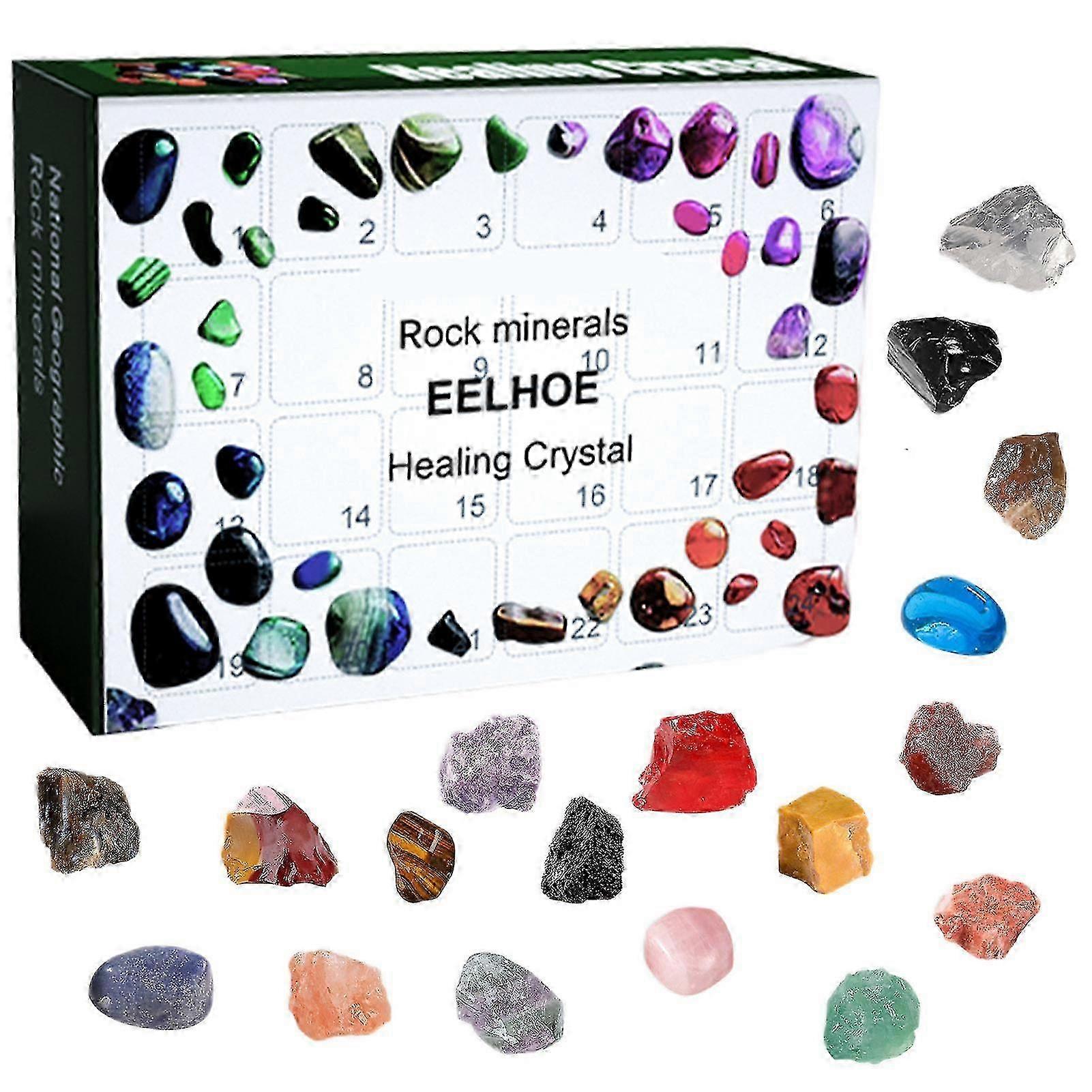 Christmas Advent Calendar with 24 Mineral Rocks for Holiday Countdown Collection