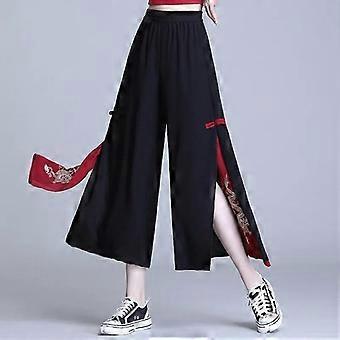 Dames Linnen Elastische Taille Cropped Broek Enkellengte Taps Toelopende Rechte Broek Wit XL