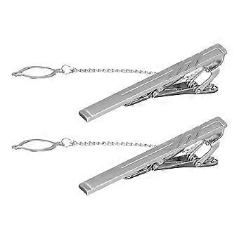 Stropdasclip met kettingassortiment, set van 2, zilveren en gouden stropdasclips met ketting en staaf