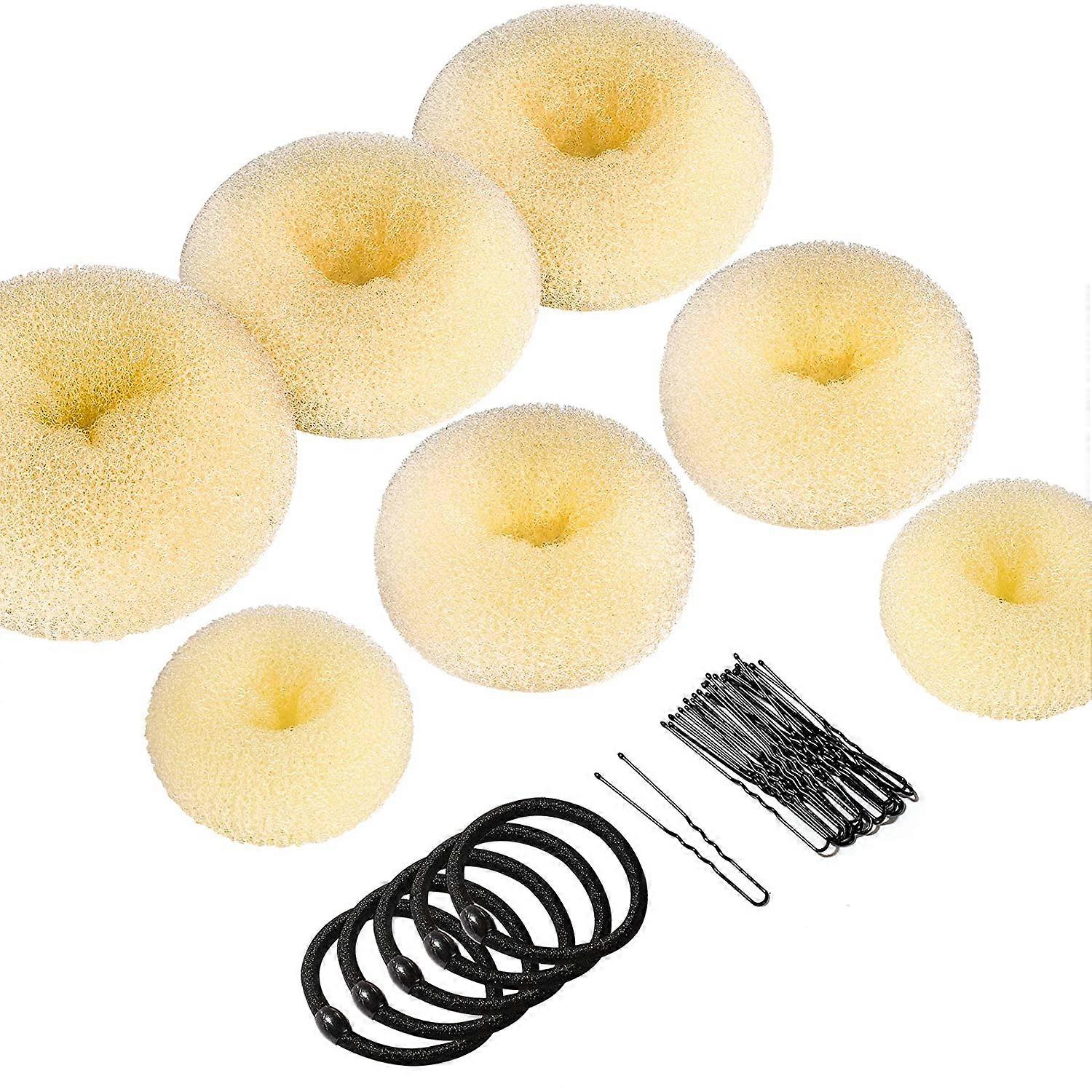 Donut Bun Maker, Bun Maker Ring Bun Maker Set with 5 Straps and 10 Bore Clips and 7 Bun Bun Bun Beige (2 Small 2 Medium 2 Large 1 Extra Large)