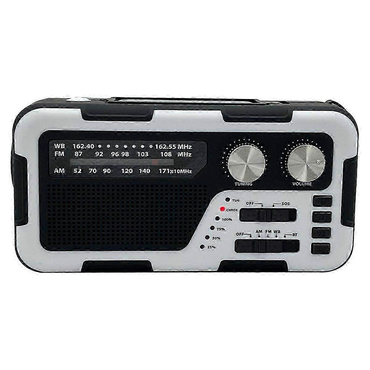 Portable Emergency Radio with Solar Charge - AM/FM/NOAA Hand Crank & USB Rechargeable - Compact Survival Radio in White