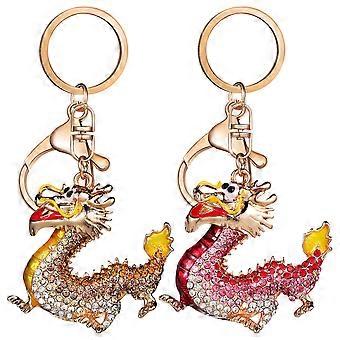 Dragon Keychains Metal Key Chain for Decoration Assorted Colors 6Pcs