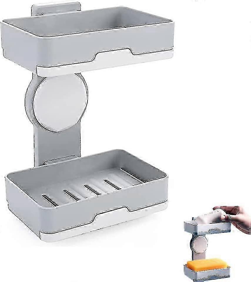 Double Soap Dish Suction Cup Double Bar Soap Dish, Double Soap Dish, Double Layer Soap Dish, No Drilling (gray) Betterlifefg