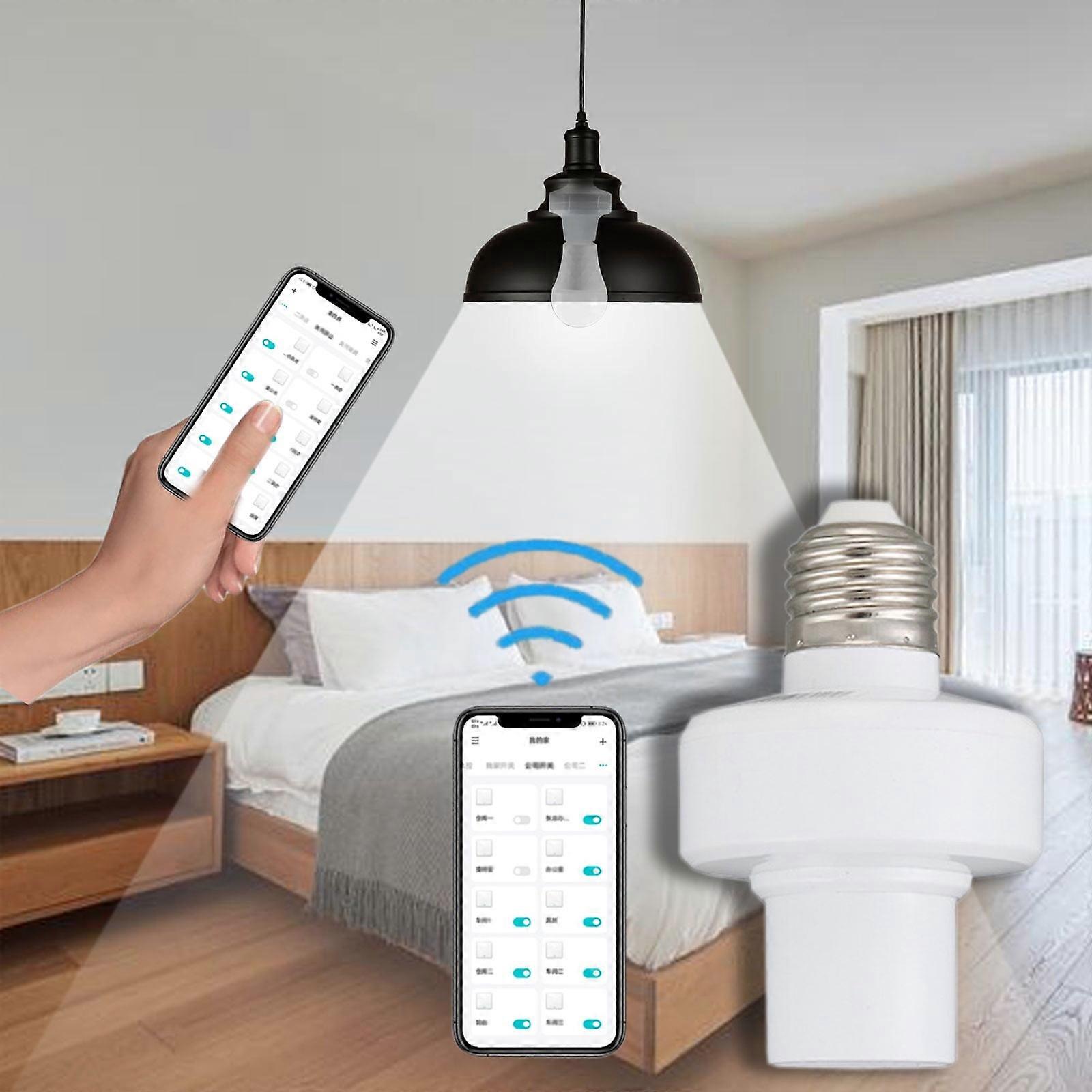 E27 Smart Light Socket Adapter, Wireless Bluetooth APP Remote Control Switch for Bulbs, Smart Home Automation E27 Screw Lamp Holder, No WiFi Needed Phone Control for Bedroom Living Room Feature: Quantity: 1pcs Product color: White Material: Plastic Net weight: 42g/0.1lb Gross weight: 42g/0.1lb Product size:As shown in the figure Packing size: 7x7x11cm/2.73x2.73x4.29in Supported bulb power: within 100W Rated voltage: 100-265V Bluetooth remote control distance: 50 meters obstacle remote control Open and accessible Bluetooth remote control distance: approximately 50 meters Model and type: 433 RF signal, stable and able to pass through walls, with indoor measured remote control distance of up to 50 meters for partition walls Can it be timed: it can be timed to turn off the lights Compatibility: E27 screw LED lights/incandescent lights/energy-saving light bulbs Description: Wireless smart bluetooth light head, can be controlled without a networked mobile phone, directly connected to the "Compatible With" APP through bluetooth to directly control the on-off of the light Do you encounter these situations when you start your smart home life? There are elderly people at home, and it is inconvenient for children to turn off the lights. It is too cold to get up and the on-off is far away. Go to bed at night and don't want to get up to turn off the lights. The elderly are inflexible, and the on-off is blocked by the bed far away or the wiring is missing. Hold the baby and hold things. Full of affection, whether to turn off the lights. No one wants to get up and turn off the lights. E27 screw smart APP remote control on-off wireless bedroom energy-saving home Bluetooth lamp head to help you solve this problem Easy and convenient installation, easy and fast installation, replaceable bulbs, various types of E27 bulbs to meet different needs, can install energy-saving lamps, LED lights, incandescent lamps Suitable for multiple scenes, E27 screw smart APP remote control on-off wireless bedroom energy-saving home Bluetooth lamp head can be used in bedroom/living room/dining room/study room/toilet and other home places Sophisticated quality control and product quality, our E27 screw smart APP remote control on-off wireless bedroom energy-saving home Bluetooth lamp head is directly from the factory, so you can use it with confidence! ! ! Package Content: 1 x E27 Luokou Intelligent APP Remote Control on-off Wireless Bedroom Energy Saving Home Bluetooth Lamp E27 screw base adapter with Bluetooth APP control for on/off functions Supports bulbs up to 100W and voltage range of 100-265V for compatibility Bluetooth remote control distance of approximately 50 meters through obstacles Features timer function to automatically schedule light turn-off times Compatible with E27 LED, incandescent, and energy-saving light bulbs