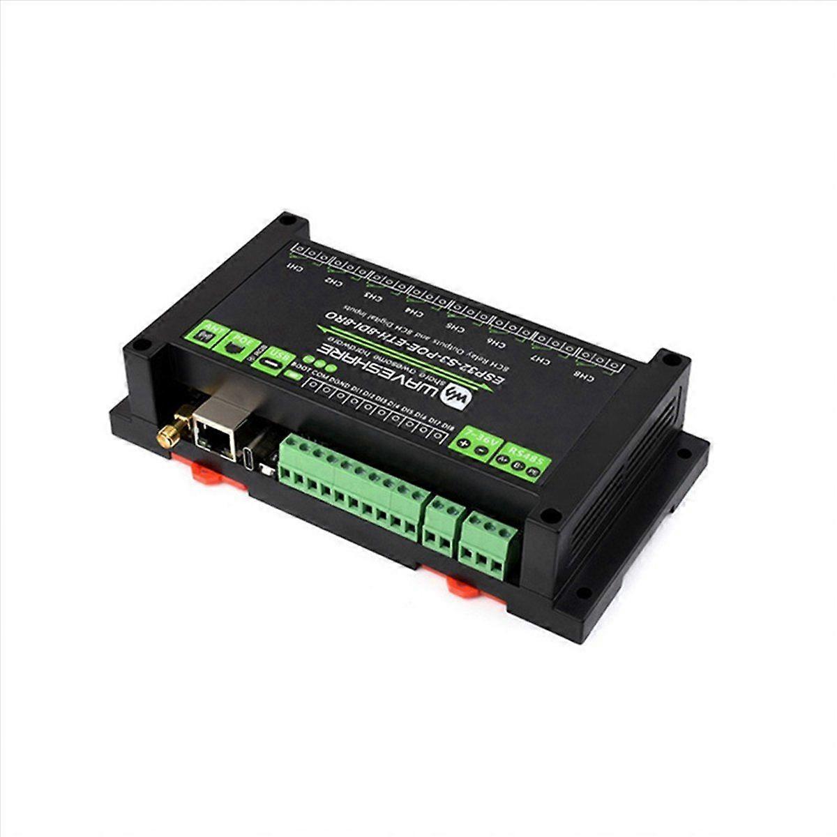 1. Based on ESP32-S3 microcontroller, built-in Xtensa 32-bit LX7 dual-core processor, main frequency up to 240MHz 2. Integrated 2.4GHz Wi-Fi and low-power Bluetooth (Bluetooth LE) dual-mode wireless communication, with excellent performance 3. Adopt high-quality relays, allowing access to loads: 10A 250V AC or 10A 30V DC 4. The switch input has bidirectional optocoupler isolation, supports passive and active switch input, and the relay supports switch input linkage mode control 5. Onboard isolated RS485 interface, convenient for external expansion to various RS485Modbus industrial expansion modules or sensors Onboard pin header interface, allowing access to other devices Onboard USB Type-C interface, which can be used for power supply and download debugging, convenient for development and use Onboard terminal power supply interface, supports 7V-36V wide voltage range power supply, convenient for industrial power supply use Onboard Micro-SD card slot, external SD card can be connected to store pictures or files Microcontroller: ESP32-S3 (ESP32-S3-WROOM-1U-N16R8 module by default) Wireless communication: 2.4GHz Wi-Fi (802.11 b/g), Bluetooth 5, BLE Interface: USB Type-C Power supply voltage: 5V Interface type: RS485 Number of input channels: 8 Input voltage range: 5V-36V (The product appearance and printed words depending on the batch, but this does not affect use) Specification: A Color: As shown Material: ABS Package Contents: 1 x Wi-Fi Network Relay 1 x Antenna 1 x Screwdriver Only the above package content, other products are not included. Note: Light reflection and different displays may cause the color of the item in the picture a little different from the real thing. The measurement allowed error is +/- 1-3cm.