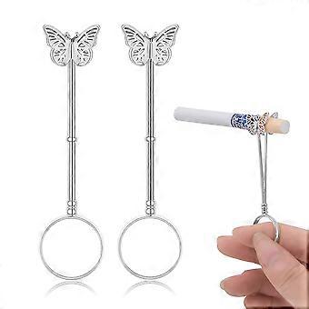 2 Pack sigarettenhouder met clip voor mannen en vrouwen elegante vlinderpatroon koperen sigarettenhouder stijlvol cadeau voor vrouwen en mannen 1,7 cm (zilver maar