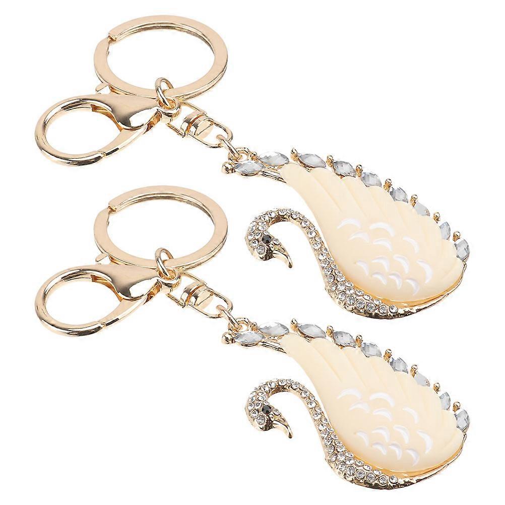 Glitter Charm Keychain Swan Alloy for Decoration 2Pcs Elegant Accessory