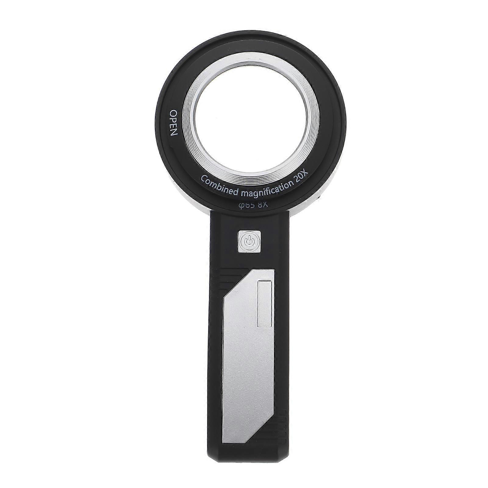 Handheld Lighted Magnifier Multi Function Reading Magnifying Glass For Seniors In Black 1Pcs