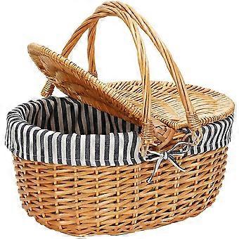 Handgeweven rieten mand met deksel en handgrepen, veelzijdige opslag en picknickoplossing