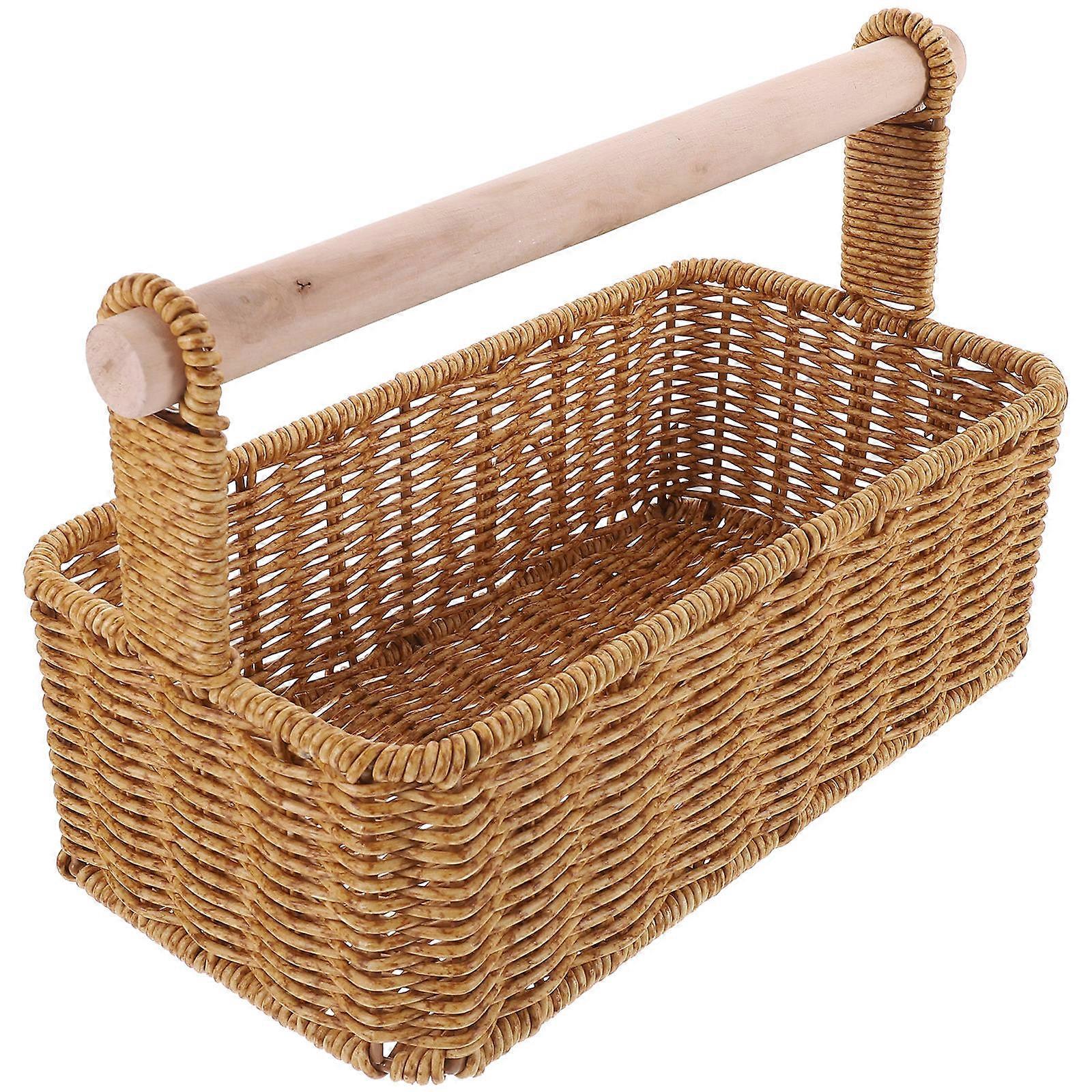 Imitation Rattan Basket Hand Woven Bread Serving Basket for Storage 2Pcs