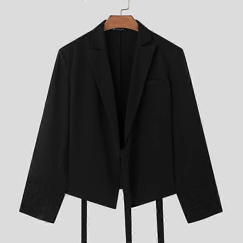 INCERUN Men Lapel Patchwork Long Sleeve Loose Blazer Tassel Short Coats