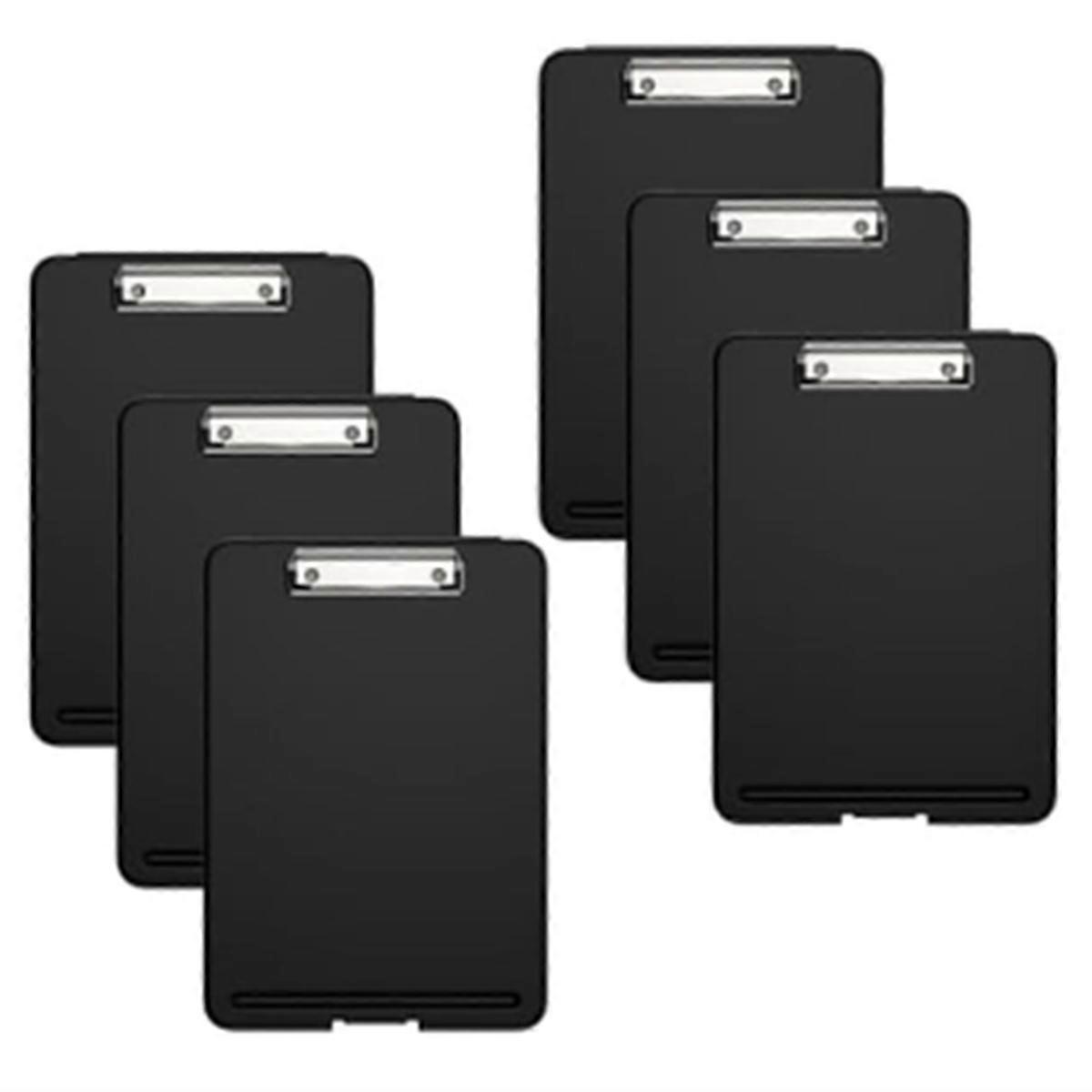 High-quality, robust plastic clipboards designed for daily use. Our transparent clipboards are crafted from waterproof polypropylene, perfect for nurses, students, contractors, truck drivers, coaches, and officers. Its sleek design not only makes it sturdy and hard-wearing but exceptionally user-friendly. An exclusive hinge and buckle system add to durability. Portability meets convenience. Sized at 13.4 x 9.4 x 0.9 inches each, our clipboards are easy to carry and fit perfectly in your backpack. Designed to hold 8.5x11 inch paper securely with ease. A low-profile clip offers a firm grip, and a buckle prevents contents from falling. Features a hang hole on the back for added convenience. Experience hassle-free writing with our clipboards. Excellent for managing tasks on the go - these letter-sized clipboards have a robust plastic base as a portable writing surface. Designed for prolonged and comfortable use with rounded edges. Organize your essentials with a pencil divider and paper storage component that comfortably holds up to 150 sheets. Experience a mobile desk with our storage clipboard. Organize, record tasks, and store stationery items like pens, pencils, paper, rulers conveniently with ours storage clipboard. Slim enough to fit into briefcases and backpacks, yet sturdy enough to carry a considerable stack of papers. Versatile and widely-applicable across various domains. perfect for classrooms, hospitals, offices, waiting rooms, meetings, etc. Our clipboards are an excellent tool to keep your files more organized, making it a perfect gift choice for nurses, officers, coaches, and everyone returning to school like teachers and students. Colour:Black Material:Plastic Package Contents: 6 * folder Only the above package content, other products are not included. Note: Light reflection and different displays may cause the color of the item in the picture a little different from the real thing. The measurement allowed error is +/- 1-3cm.