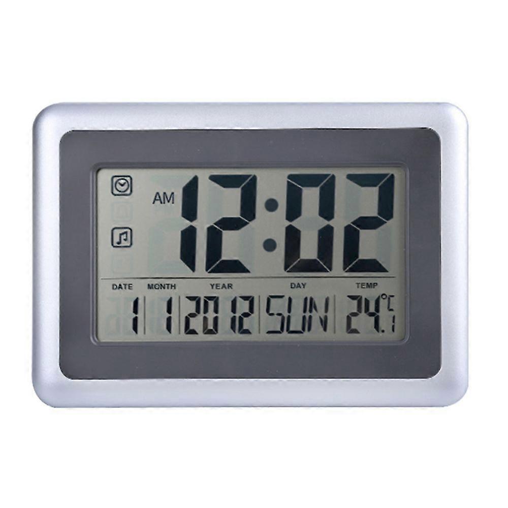 LCD Digital Alarm Clock Wall Clock Time Date Year Temperature Display