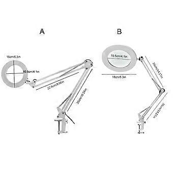 Features: This Clamp Lamp with 5X Magnification, perfect for reading, for cross stitching, knitting, crocheting, beading or other hobbies. so that they can see their work or hobbies with ease and without. 5x magnification: solid glass lenses of 5diopter provide a clear view with magnification of up to 5x / 500%. The line of sight through this lens will be clearly visible because there is no internal reflection in the air and long-term use will not cause dizziness. It is for ideal for activities such as metalworking, hand embroidery, reading or other hobbies. Good stability: metal rotary arm with 3 knobs and 4 springs, very stable, can be fixed lamp without swinging from side to side, do not fall or shake. To keep your arms stable, release your hands. 3 Colors Modes: 3000K-4000K-6500K (cold white, normal, warm light), similar to daylight, diffuser plate emits soft light, no ghosts, for glare or flicker. Adjustable height swing arm: lamp holder can be adjusted up and down 220°, flexible rotation 360°. 13cm + 13cm telescopic long arm, adjustable 180°/ 135°. Eye protection: 4.1 inch real glass lenses provide clear for vision, light provides soft light, no flicker, no for glare, no dazzling to the eyes, no radiation. This is a great gift for people who need constant for focus for work or for people with low for vision, such as the elderly, aging eyes or macular degeneration. Specifications: Material: Aluminum Alloy Size 1 Length: 220 x 220mm / 8.66 x 8.66 in Size 1 Length: 330 x 330mm / 12.99 x12.99in Magnification: 5X Light source: 60 LEDs Power supply: 5V 2A Magnifying glass diameter: 105mm / 4.13" Package Includes: 1x LED Magnifying Lamp note: Please allow 1-3cm error due to manual measurement. pls make sure you do not mind before you bid. Due to the difference between different monitors, the picture may not reflect the actual color of the item.