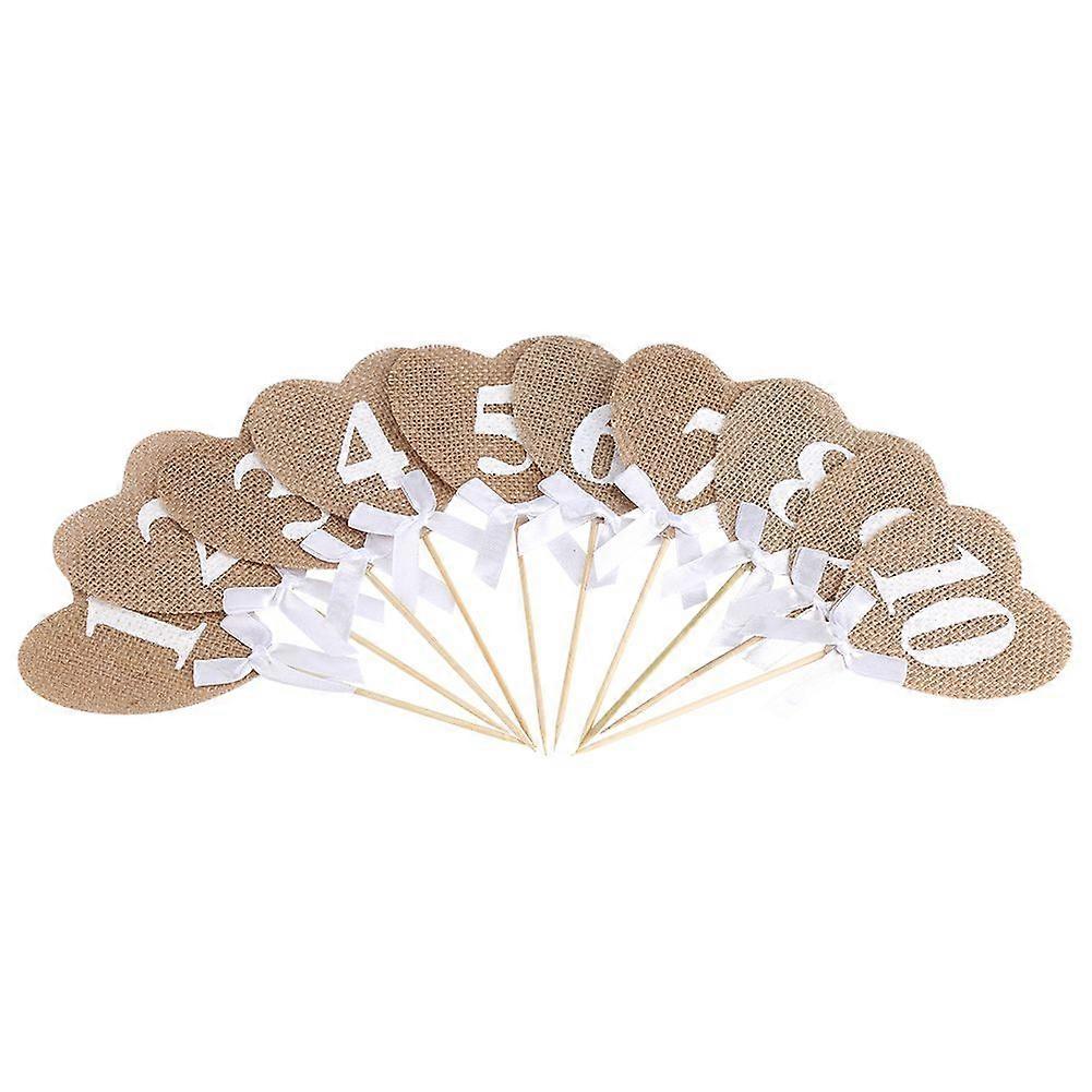 Linen Heart Table Numbers Set 1-10 with Ribbon for Weddings, Birthday Parties